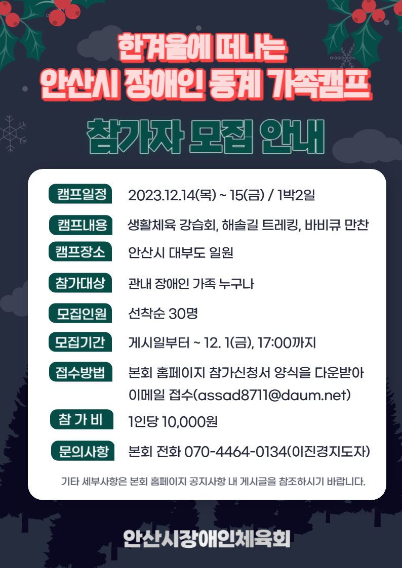 안산시 장애인 동계 가족캠프 참가자 모집 안내