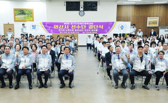 (경기=NSP통신) 김여울 기자 = 경기 안산시(시장 윤화섭)에서 개최되는 제9회 경기도장애인체육대회에 참가하는 ‘안산시 선수단 결단식’이 3일 시청 대회의실에서 열렸다.